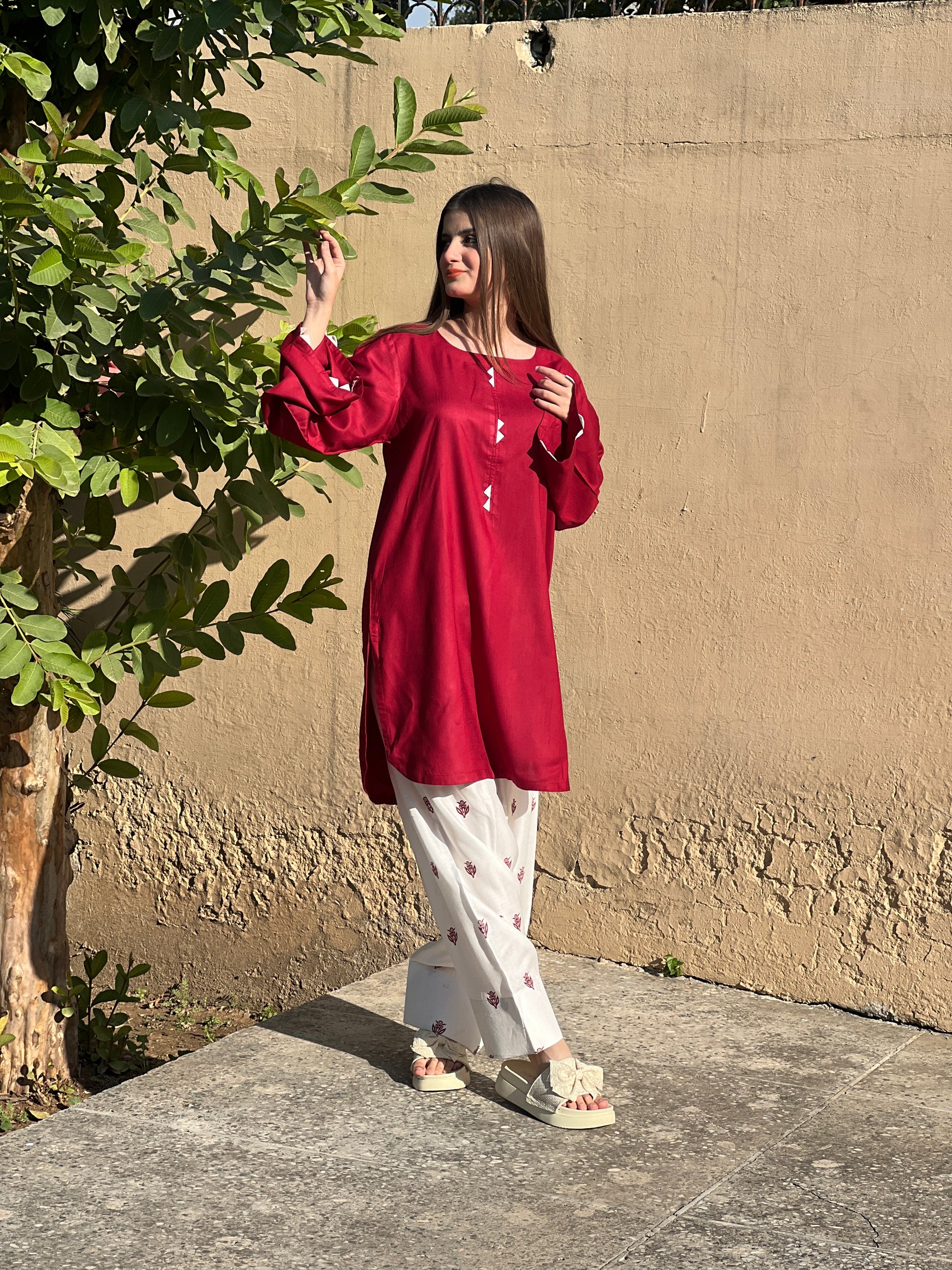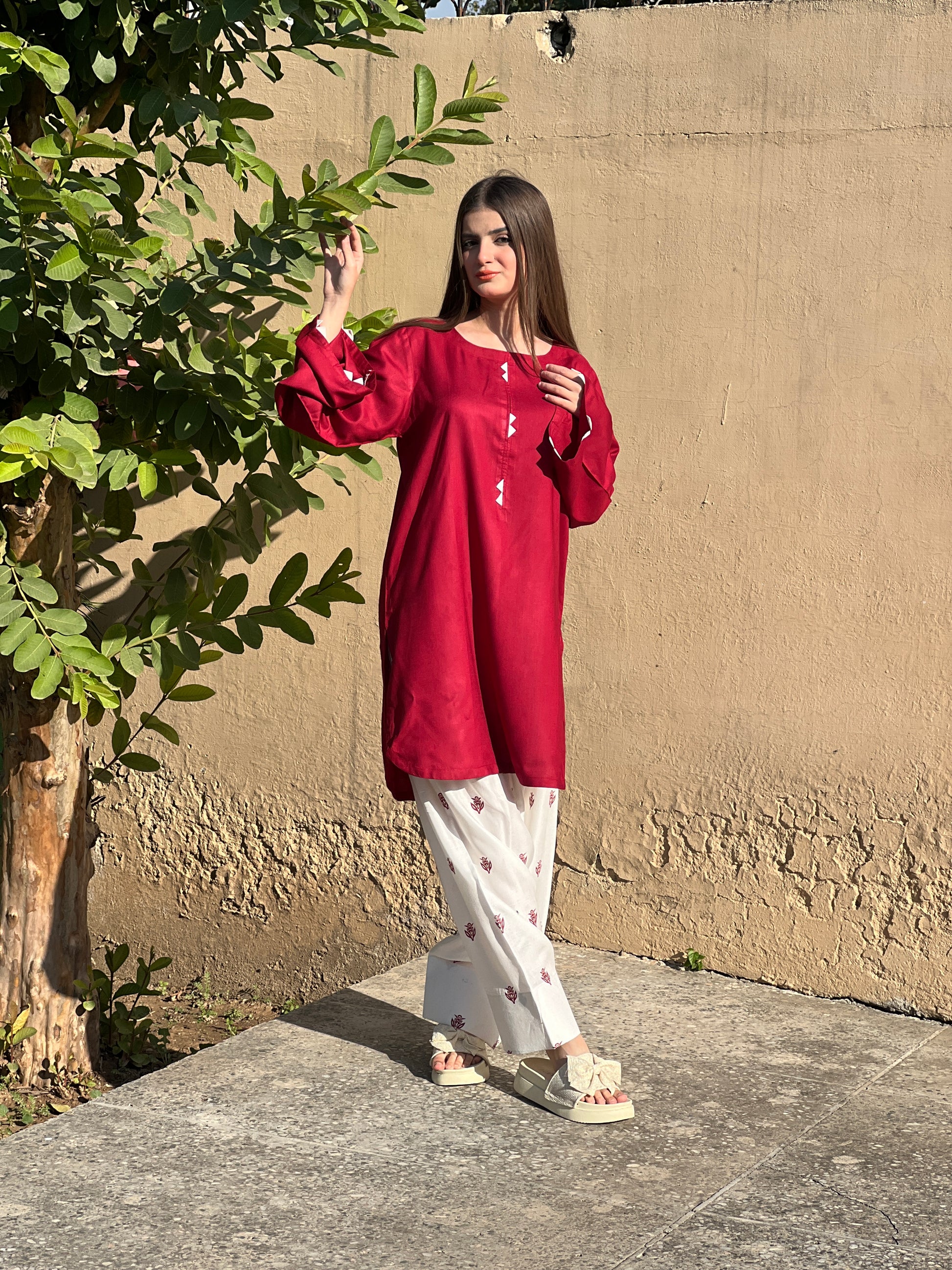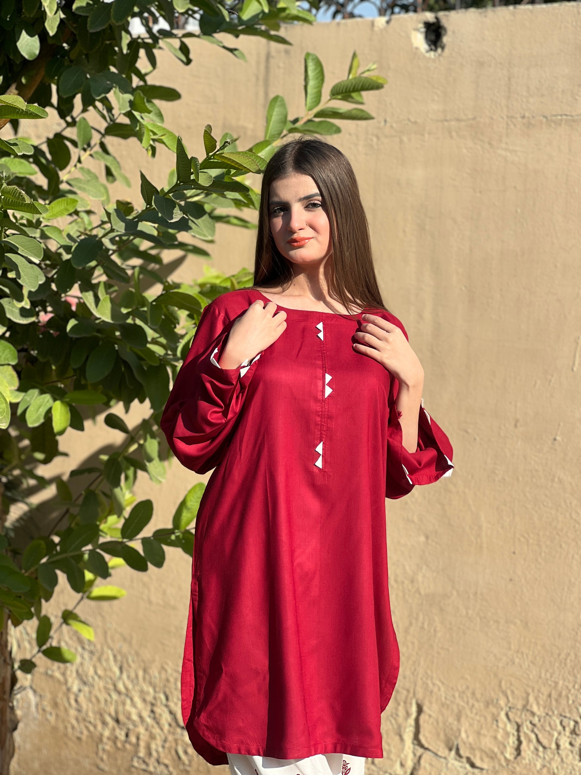 A soft yet statement Maroon outfit that blends comfort and elegance. “maroon ” features premium linen fabric designed to keep you cozy while looking chic. Perfect for casual outings, brunches, or everyday elegance.